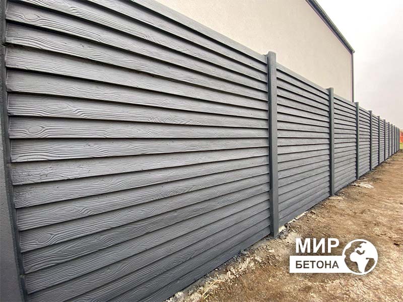 C двусторонним забором этой модели вы сможете сделать красивое и современное оформление двора у дома. Бетонное ограждение с дизайном Сайдинг сделано с имитацией деревянной облицовки – сайдинга, и привлекает внимание своей изысканностью. Такой забор будет хорошо смотреться на фоне любого фасада – небольшого дачного домика или роскошного коттеджа. Одно из главных преимуществ данной модели - рисунок присутствует с обеих сторон плит, что добавляет вариативности в дизайн участка.